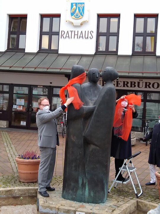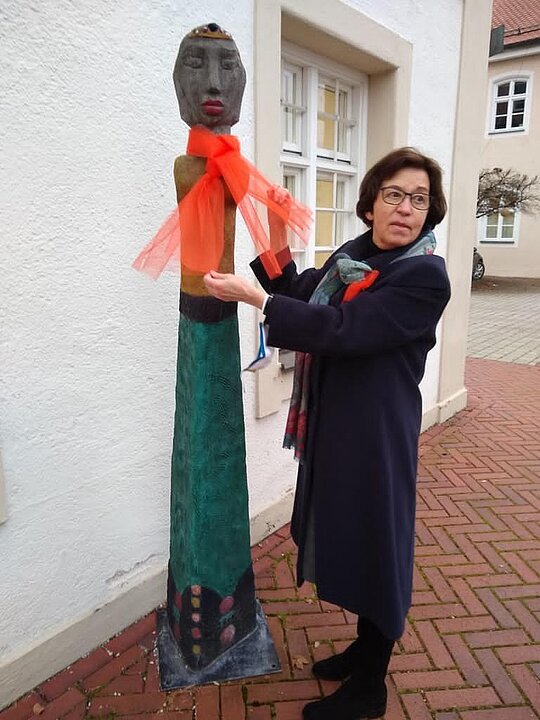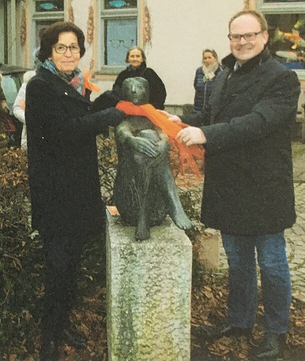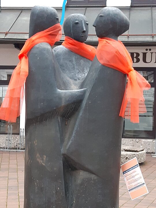 Als sichtbares Zeichen hatten die Mitglieder des Soroptimist International Club Prien am Chiemsee gemeinsam mit dem 1. Bürgermeister Herrn Friedrich orangefarbene Tücher an ausgewählten Priener Statuen angebracht.