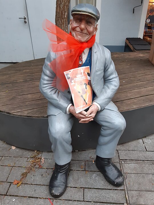 Der 25. November ist der Internationale Tag gegen Gewalt an Frauen, an dem weltweit mit Aktionen wie den „Orange Days“ auf das Dilemma aufmerksam gemacht wird. Für die „Orange Days“ werden orangefarbene Tücher um Kunstobjekte gehüllt – so auch in Prien. Karola Prechtl, Präsidentin des Soroptimist Clubs Prien, setzte dies gemeinsam mit einigen ihrer Mitstreiterinnen in Prien vor dem Rathaus an der „Begegnung“ sowie an der Spitzweg Apotheke an der „Sitzenden“, beide von Marianne Lüdicke, in der Bahnhofstraße am „Adam“ von Heinrich Kirchner sowie an der Tourist-Info an der „Marktkönigin – Glücksbotin“ von Greta Fischer um. Schirmherr der Aktion war der Erste Bürgermeister Andreas Friedrich, dem sie als Dank mit selbstgemachtem Eierlikör und Weihnachtsplätzchen ein Präsent überreichte. Die leuchtend orangefarbenen Tüll-Schals blieben bis zum 10. Dezember, dem Internationalen Tag der Menschenrechte, hängen.